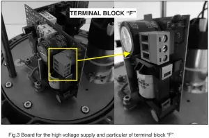 The wiring diagram, which should be followed for proper wiring of the actuators, is shown in Paragraph 10.0 and it can be found also on the label inside the upper cover. Please follow the maximum allowed electrical rating values. The terminal block “F” in the 100-240Vac is shown in Fig. 3, 12Vac/dc and 24Vac/dc in Fig. 2. The cables through the connector must be of the proper size.