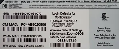 Zoom Telephonics 5360 N600 Cable Modem/Router