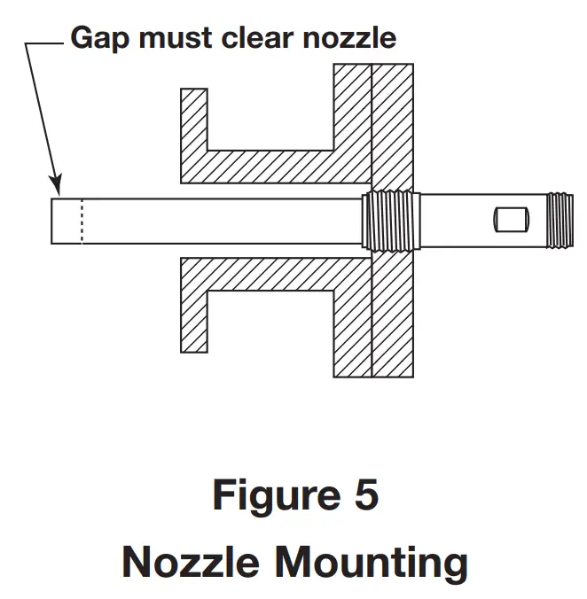 When installed in a nozzle or pipe, the transducer gap must extend into the tank at least one inch beyond the inside tank wall. Refer to Figure 5.