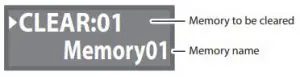 settings that will be returned to their factory set state, and press the [MEMORY/VALUE] knob.Value Explanation MEMORY Memory 1–99 SYSTEM System settings MEM+SYS Memory 1–99 and system settings A confirmation message “ARE YOU OK?” appears.