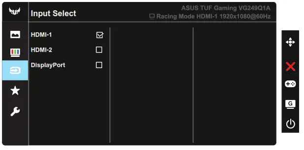 Select the input source from HDMI-1, HDMI-2, or DisplayPort input signal.