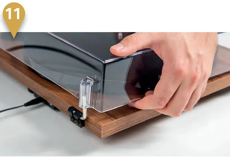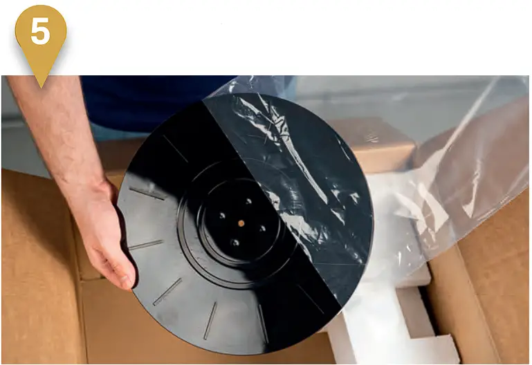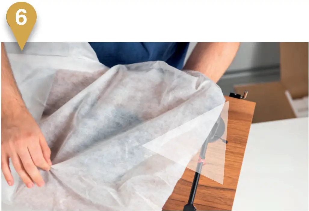 Never return a record player without making sure that is it safely disassembled and correctly packaged in the original packaging according to the diagrams on the last page of this user guide. Please remove these parts and pack them separately: lid, counterweight, anti-skating weight and belt. Fit the cartridge protection cap and the transport lock for the tonearm tube, prior to carefully packaging the record player.