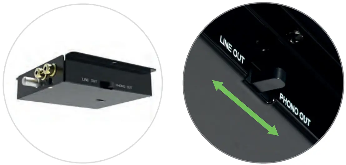 Select Line Out to connect to an amplifier without a phono stage. Select Phono Out if you have an amplifier with a phono stage.
