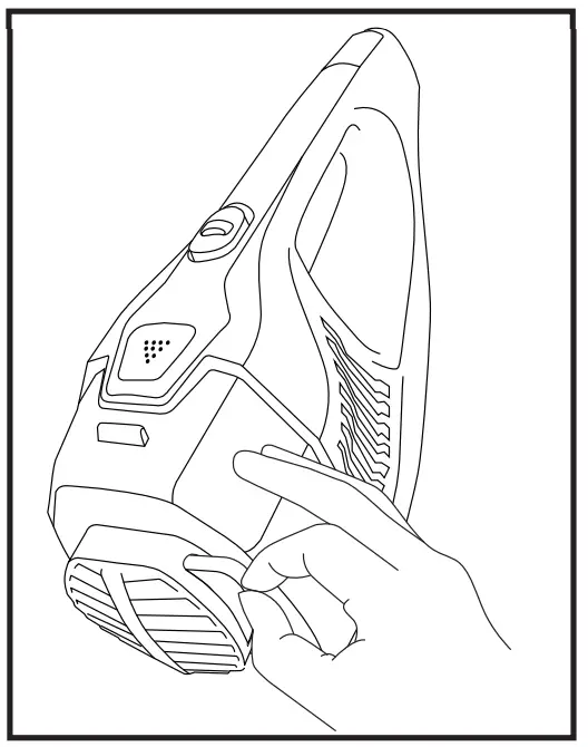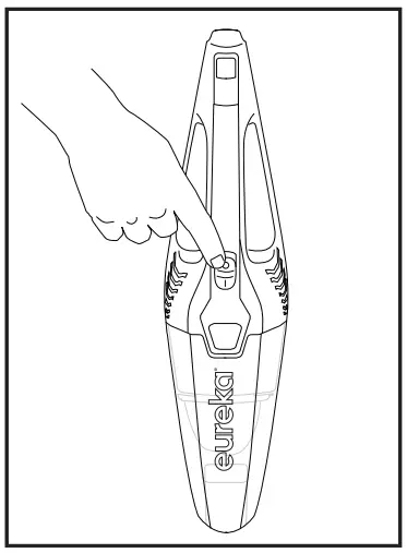 To remove dirt from the dust cup and filter, hold vacuum vertically. Press dust cup latch to release the dust cup as shown.