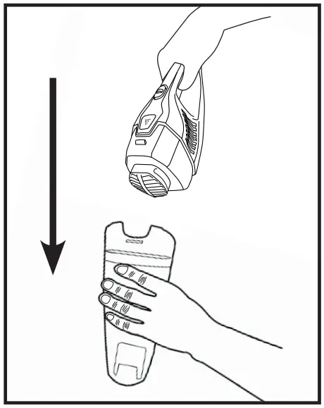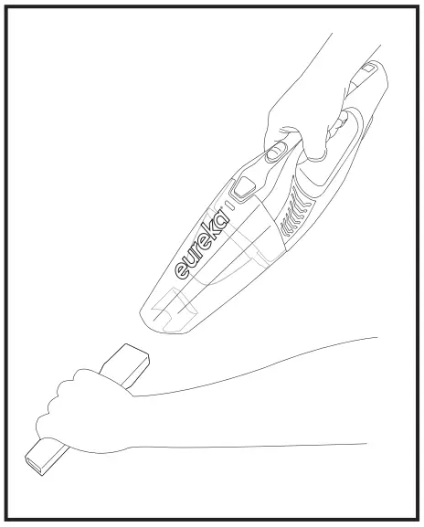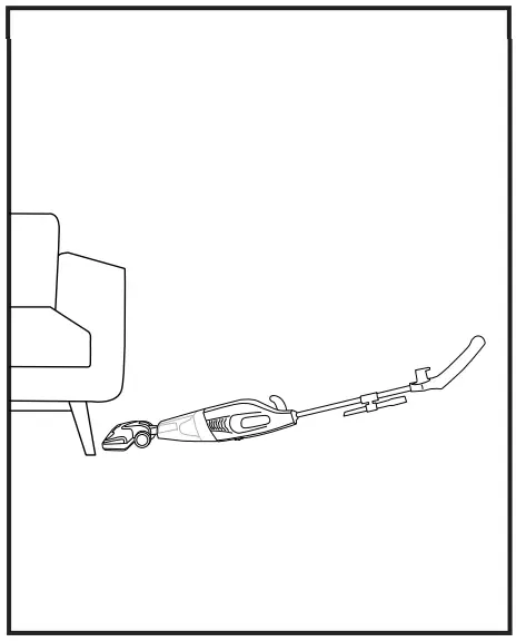 Turn hand vacuum 180° as shown for better reach under furniture.