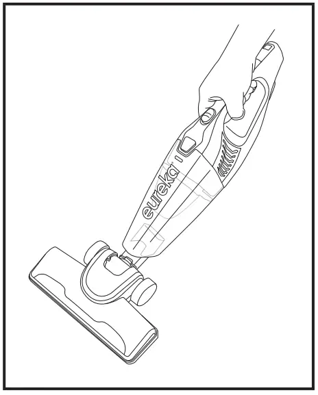 To attach floor nozzle to the hand vacuum, insert it into the opening at the bottom of the hand vacuum. Press firmly to secure in place.