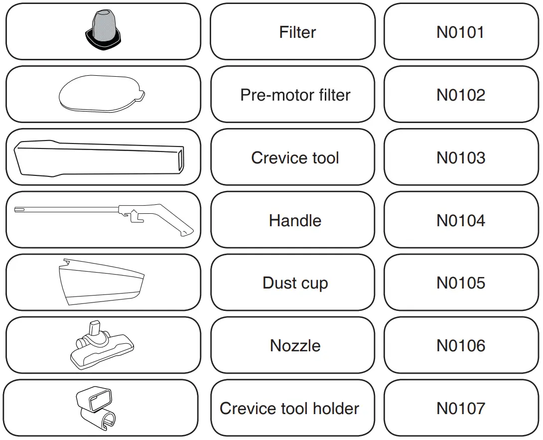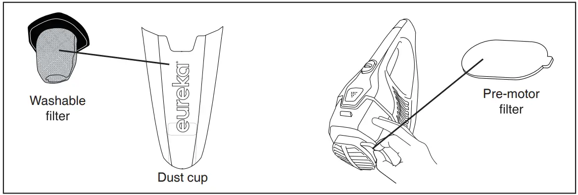 - Do not use without dust cup, filter, and pre-motor filter in place.