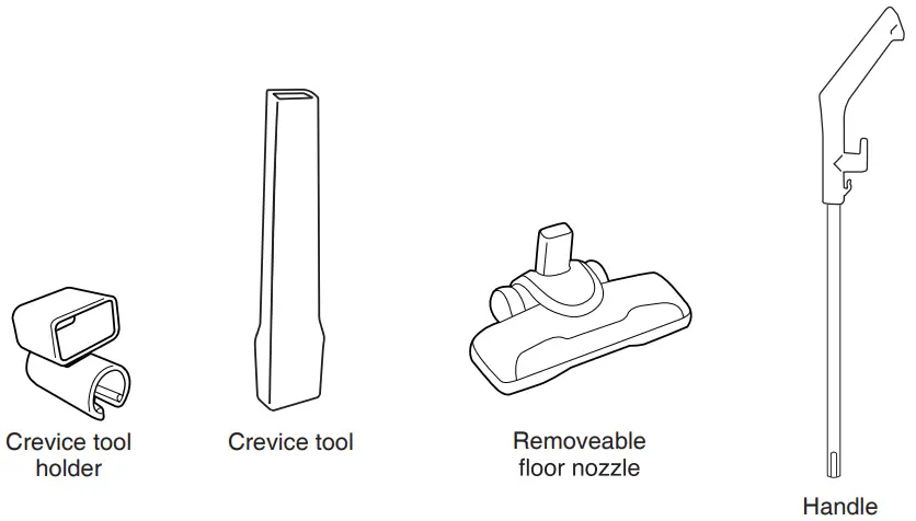 Attach the floor nozzle by inserting it into the opening at the bottom of the dust cup. Press firmly to secure in place.