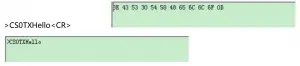 For Example: to send “Hello” from RS232 to LAN, the Hex code is: