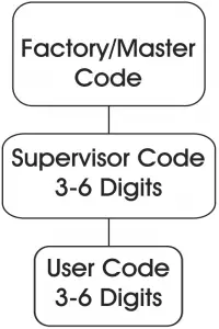 This lock can operate using 3 codes (factory or master code, supervisor code and user code).