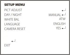 - WHITE BAL (ATW / PUSH / USER1 / USER2 / MANUAL / PUSH LOCK )