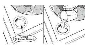 Do not overfill, dilute, or use more than 1 cup (236 mL). Do not use color-safe bleach or oxi products in the same cycle with liquid chlorine bleach.