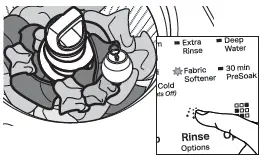 RINSE OPTIONS Press to modify the cycle’s available rinse options. Press once for Fabric Softener, twice for Extra Rinse and three times to activate both.