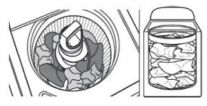 For best results, load garments in loose heaps evenly around the basket wall.