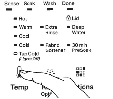 TEMP Press to modify the cycle’s available temperatures (Tap Cold, Cold, Cool, Warm, or Hot).