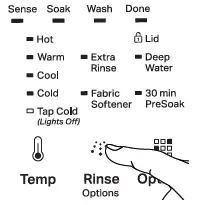 30 MIN PRESOAK Touch to add a 30 minute presoak period to help loosen tough stains. The washer will fill, pause to soak, and then begin the selected cycle.