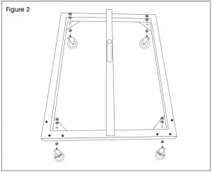 - Attach two non-locking and two locking casters to corner plates using one M10 hex nut, one M10 spring washer and one M10 washer per caster. (See Figure 2)