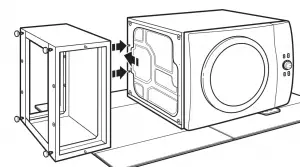Position the drawer divider so that it will be near the top of the dryer, as shown. Gently tip the dryer on its side so the dryer is resting on the drawer divider. - Prepare the dryer