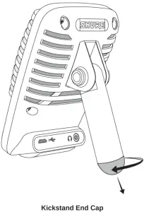 Unscrew the end cap to thread the kickstand onto a standard 5/8″ microphone stand.