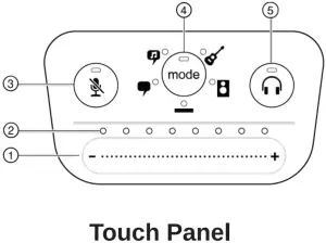 Adjust microphone or headphone level by sliding your finger across the control surface.