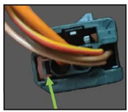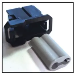 (Figure B) - From the MOST Interface: Push the tab toward the gray dust cover and, using a needle nose plier, remove the gray dust cover. Replace the gray connector with the factory fiber optic cables into the MOST interface’s black connector housing. (Figure C)