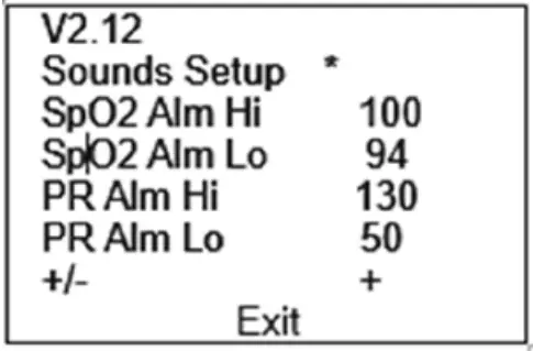 - When taking a reading, the oximeter starts emitting an audible alarm when one of the measured values is smaller or larger than the set limits.