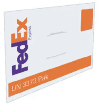 Place the box into the provided FedEx envelope. Apply the prepaid FedEx shipping label and seal the envelope. Do not cover the UN3373 label.