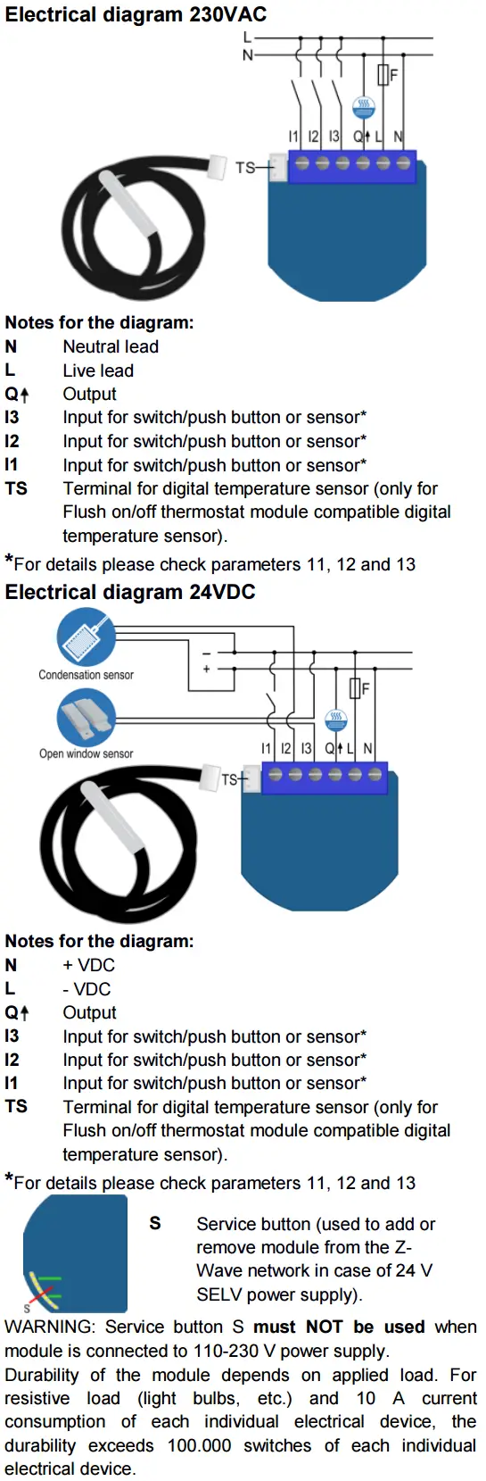 | 6 | 16 | Basic on/off (trigged by change of I1 if window sensor functionality is selected by parameter no. 11) |