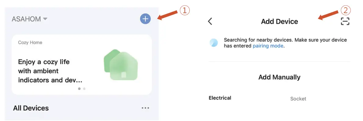 - Open the app, and tap the “+” icon in the top right corner, the device will automatically appear in the scan list.