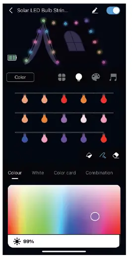 - After selecting, click on the color wheel to adjust the whole string of lights to the same color.