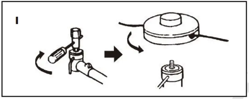 - Remove the spool and remove the old thread. Divide the thread and pass it to the point where the slit in the spool is.