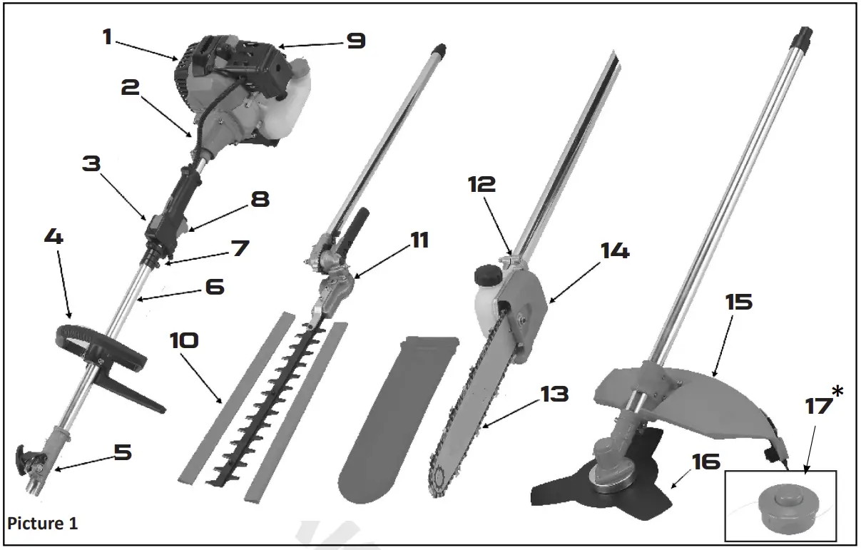 - Do not operate the pole pruner with the muffler removed.