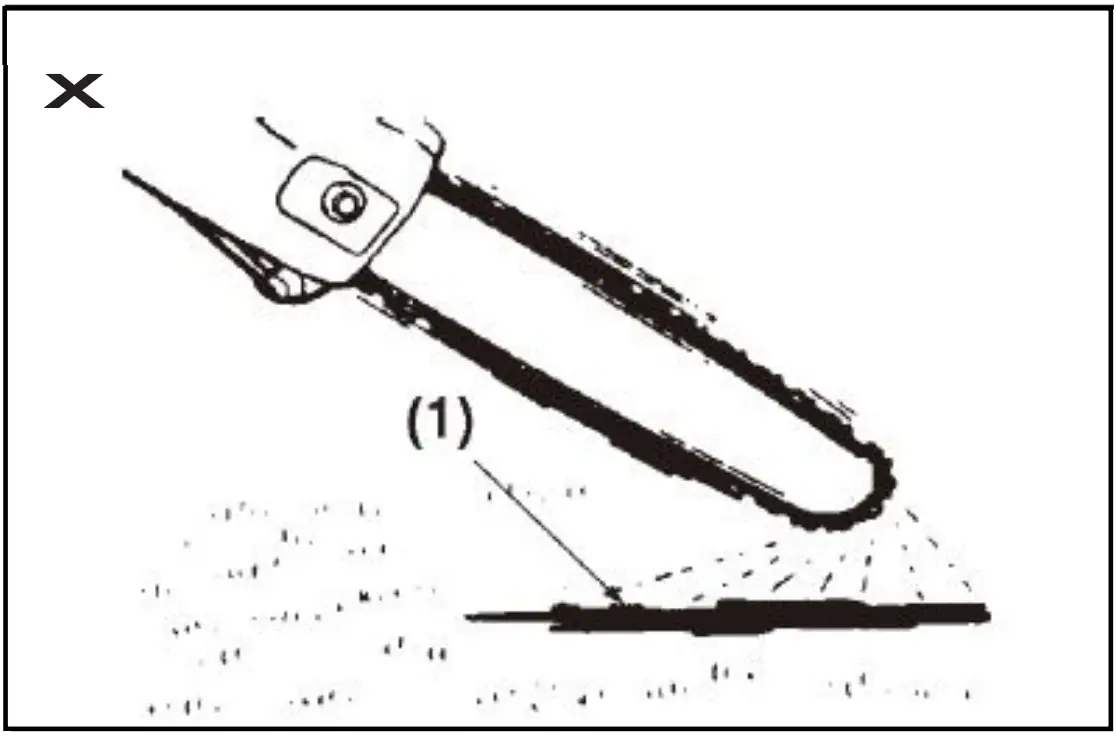 - Make certain that the area in which you are cutting is free from obstructions. Do not let the nose of the guide bar contact a log, branch, or any other obstruction which could be hit while you are operating the saw.