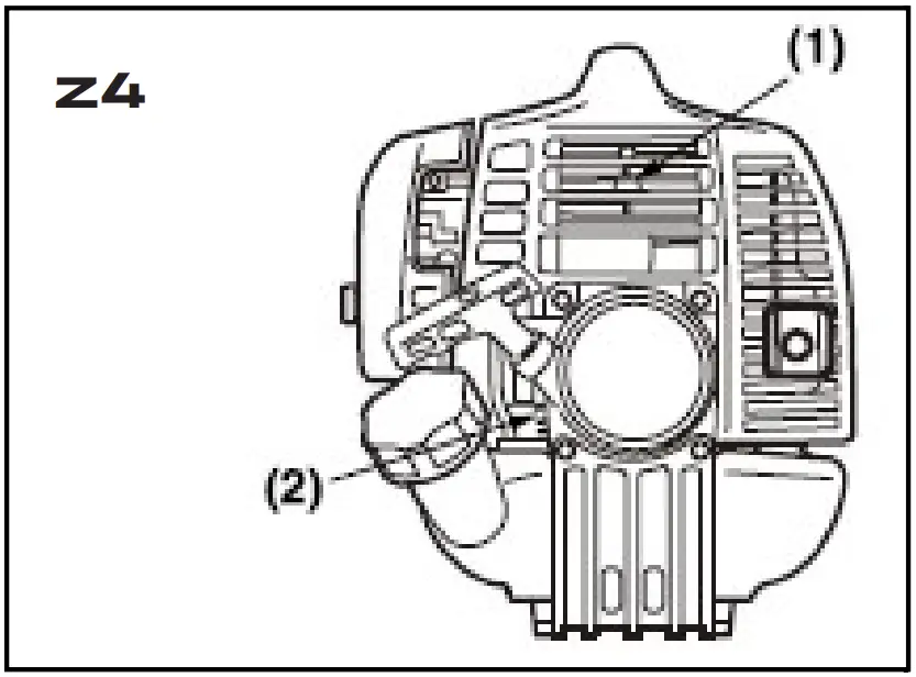 | Carburettor adjustment screw | Out of normal range | Adjust to normal range |