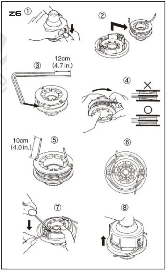 - For replacement line, use a diameter of 2.4mm ( .095in).
