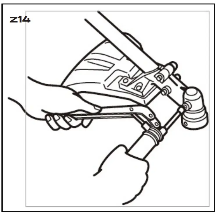 - After starting the engine, check to make sure that the cutting attachment stops rotating when the throttle is moved fully back to its original position. If it continues to rotate even after the throttle has been moved fully back, turn off the engine and take the unit to the dealer for repair.