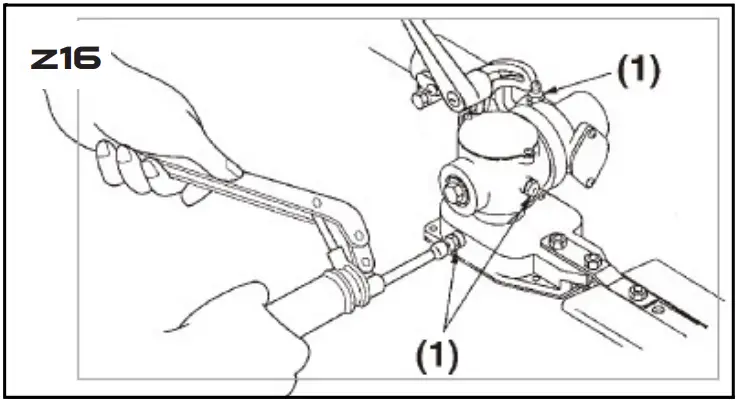 - Loosen lock nut (A) as shown in the diagram.