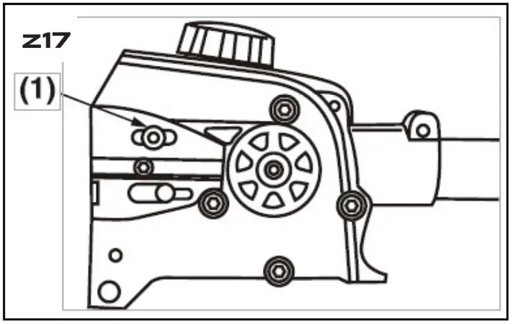 The reduction gears are lubricated by angled transmission grease in the angle transmission. Apply new grease every 25 hours of use or more often depending on the job condition.
