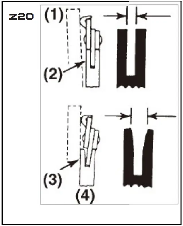 (Z20): (1) Ruler, (2) Gap, (3) No gap. (4) Chain tilts
