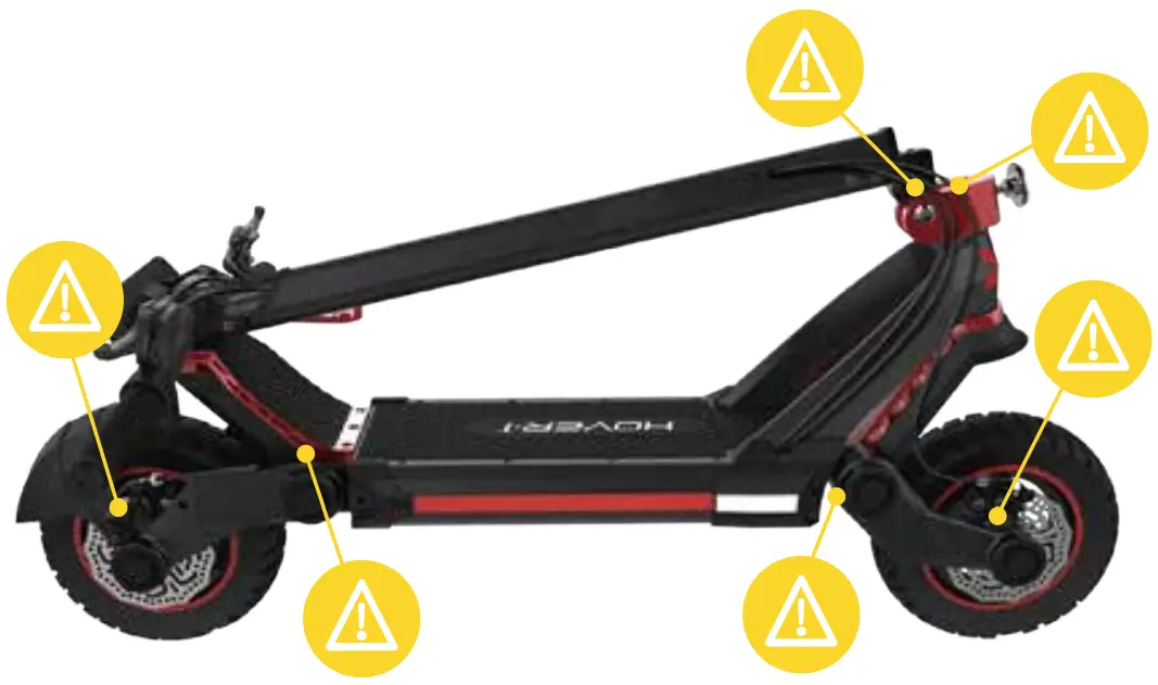 Doing so may increase the risk of mechanical failures of the scooter, which may lead to damage to your scooter, other property damage, serious bodily injury and even death.