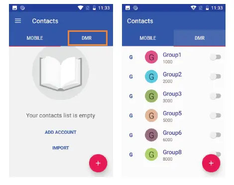 Go to “Settings – Network & Internet – DMR – DMR parameters modify- Rx group list” to set up current Rx List. The device only performs the group voice call in the current activated Rx List.