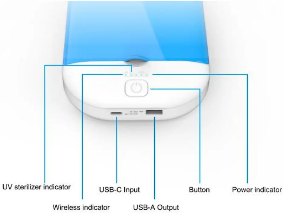 Description: UVC sterilizer box with wireless charging 10W+Power bank.