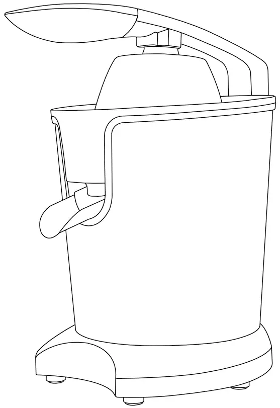 - Turn on the appliance by pushing down with the pressing handle on the piece of citrus fruit, once it has been placed on the juicing cone.