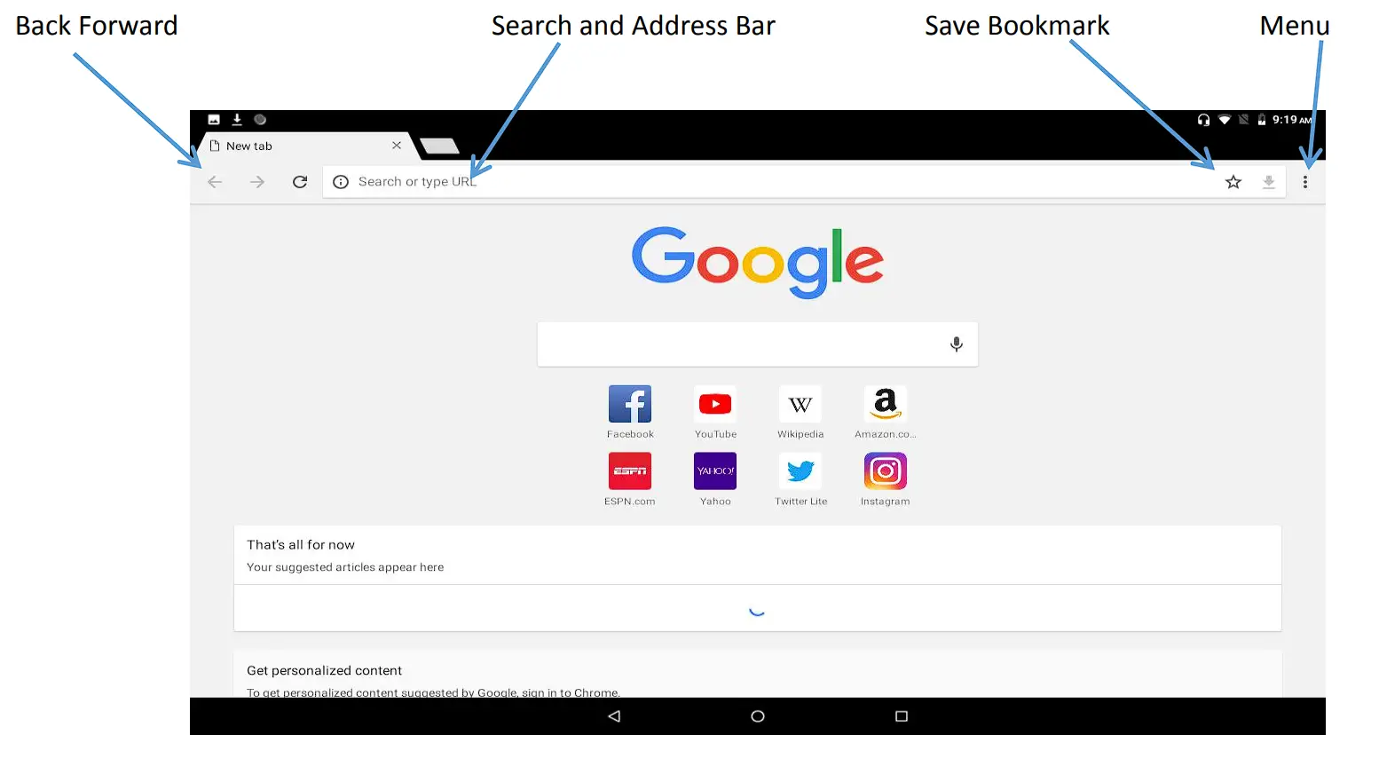 Your tablet comes preloaded with the Chrome web browser. Locate and tap the icon