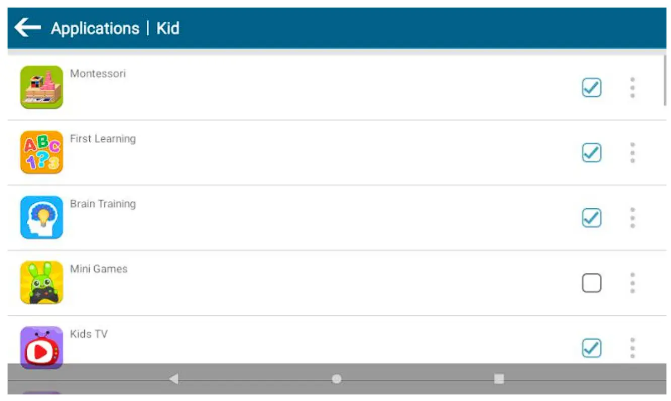 Select Apps for Kids Place; You may choose to allow or disallow certain apps from being used in Kid’s Place