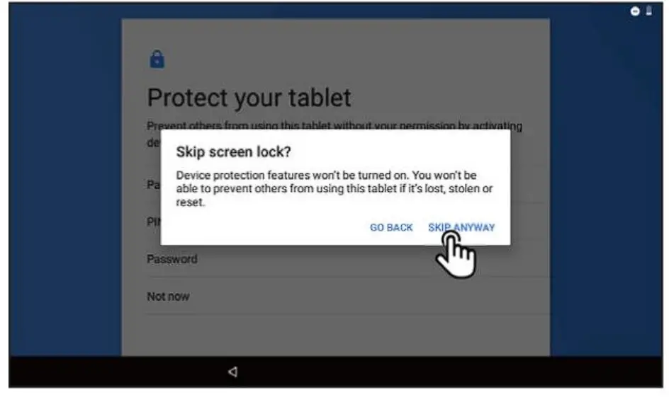Protect Your Tablet: Create password or select “Not now” and set it later.
