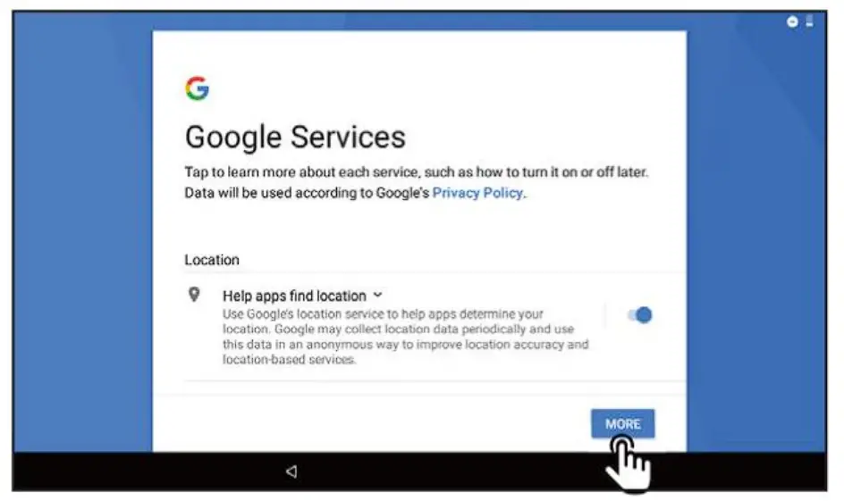 - Wi-Fi connection required to access Google Services. First connect to a network.