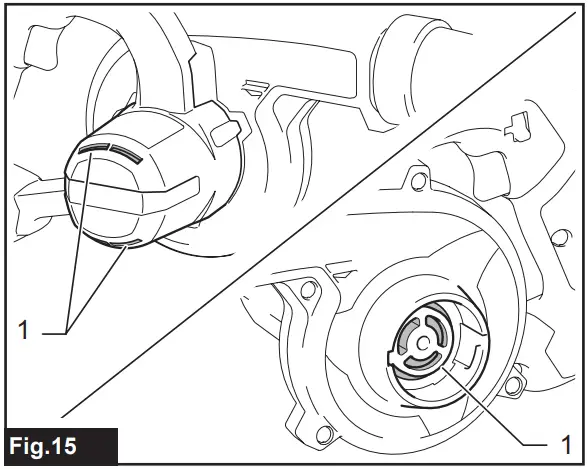 - Switch off the machine and remove the battery cartridge and make sure that all moving parts have come to a complete stop