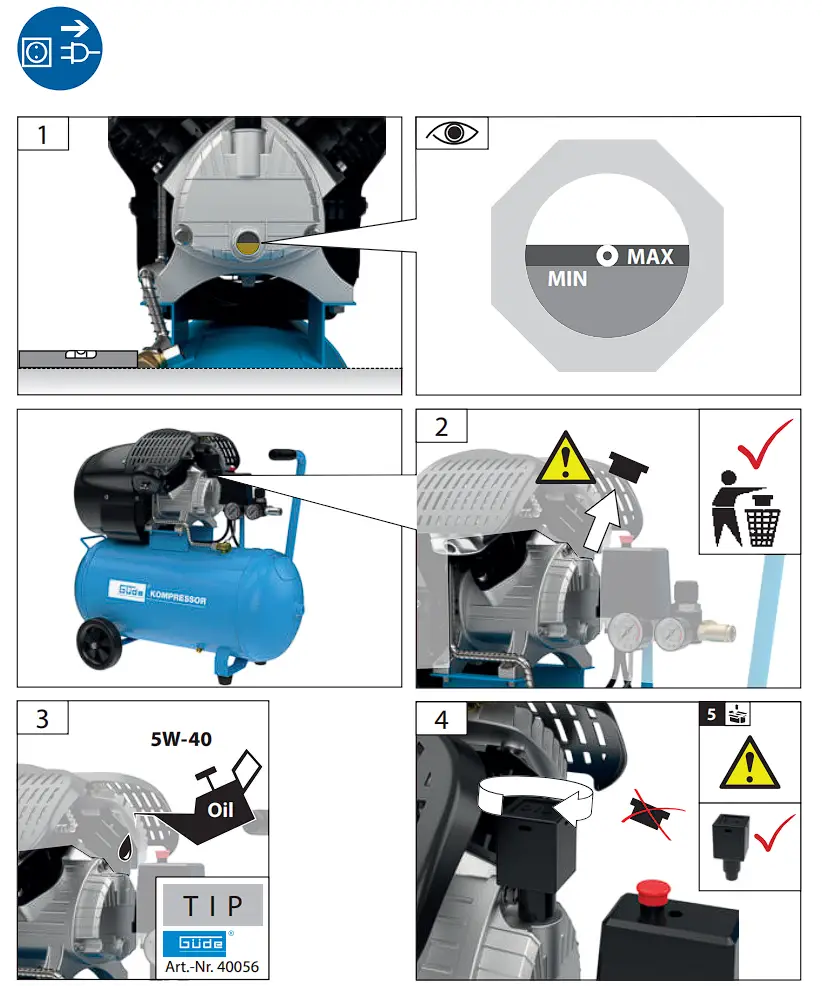 | Leaking on the compressor | Localise the leaking, contact the Güde service centre | |