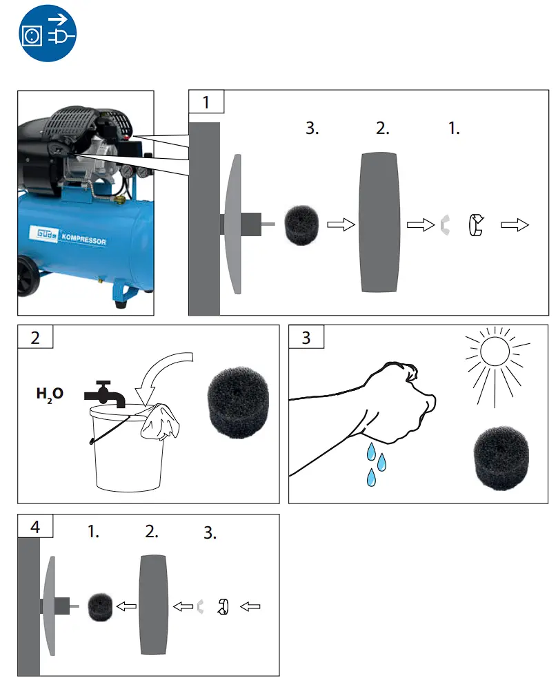 - If the compressor is used for industrial purposes, it must be checked by an expert before putting into operation for the first time. Such check must be ordered by the operator (under BetrSichV Section 17 No. 25 operation safety regulation)